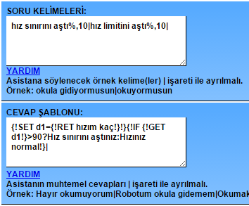 Yeni komut ekranını açtıktan sonra doldurulması gereken 2 alan var. Soru Kelimeleri ve Cevap Şablonu. Aşağıdaki ekranda bu 2 alanı nasıl dolduracağımızı görebilirsiniz.
