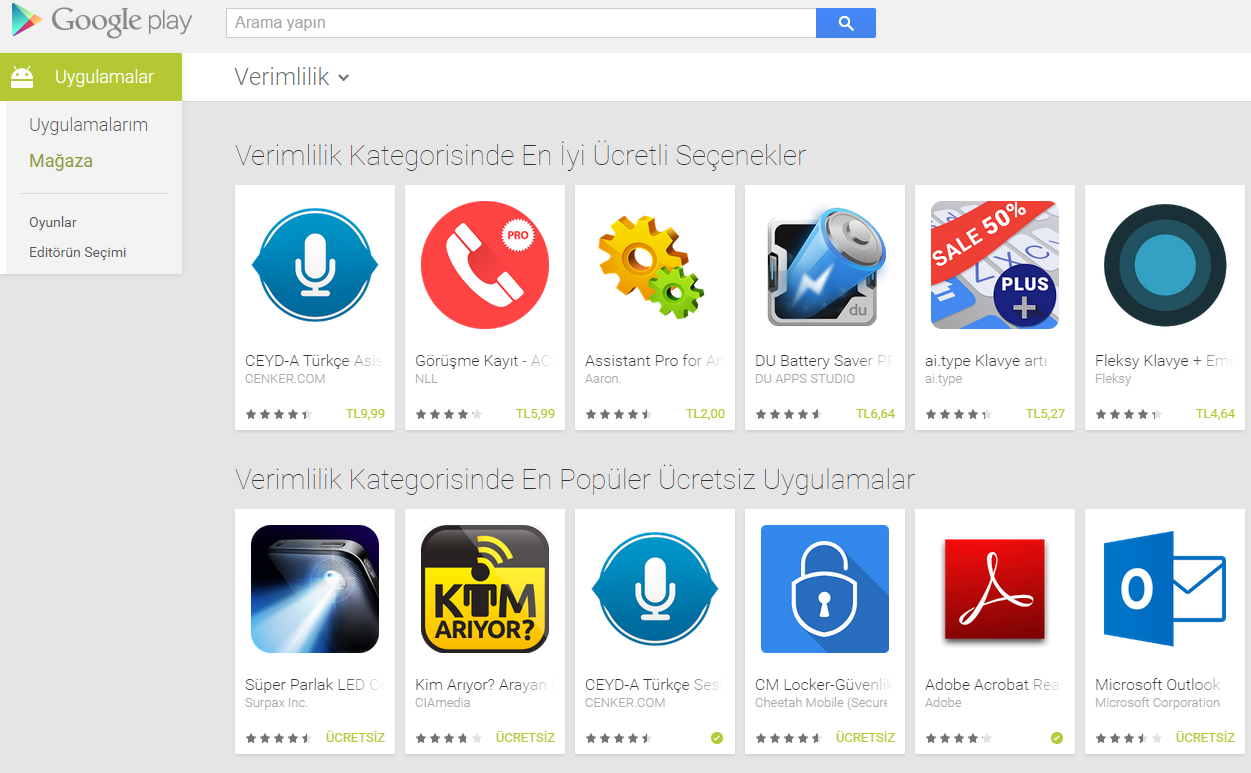 25 Mayıs 2015 itibariyle Google Play Markette CEYD-A, En İyi Ücretli Verimlilik Uygulaması. Ayrıca ücretsiz sürümü En Popüler 3. Ücretsiz Uygulama.