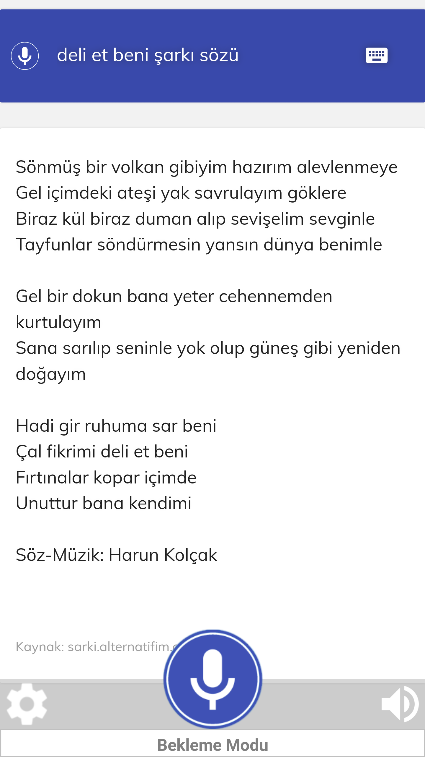 Bu örneğimizde CEYD-A’ ya şarkı sözleri içeren bir siteden arama yaptırıp şarkı sözlerinin olduğu bölümü okutturalım. Sonunda ona Oynama şıkıdım şarkı sözü, Kol düğmeleri şarkı sözü gibi cümleler kurduğumuzda bize bu şarkıların sözlerini okuyacak.