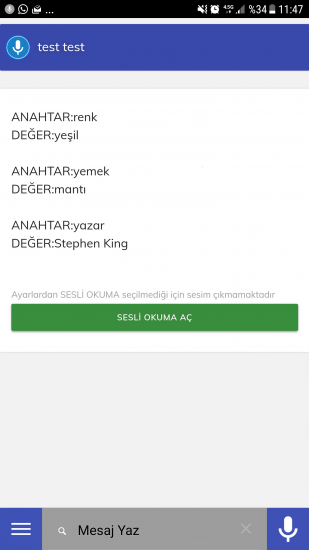 değerlerini atalım. Bu şekilde en sevdiğimiz yemeği, rengi ve yazarı belirlemiş oluyoruz.