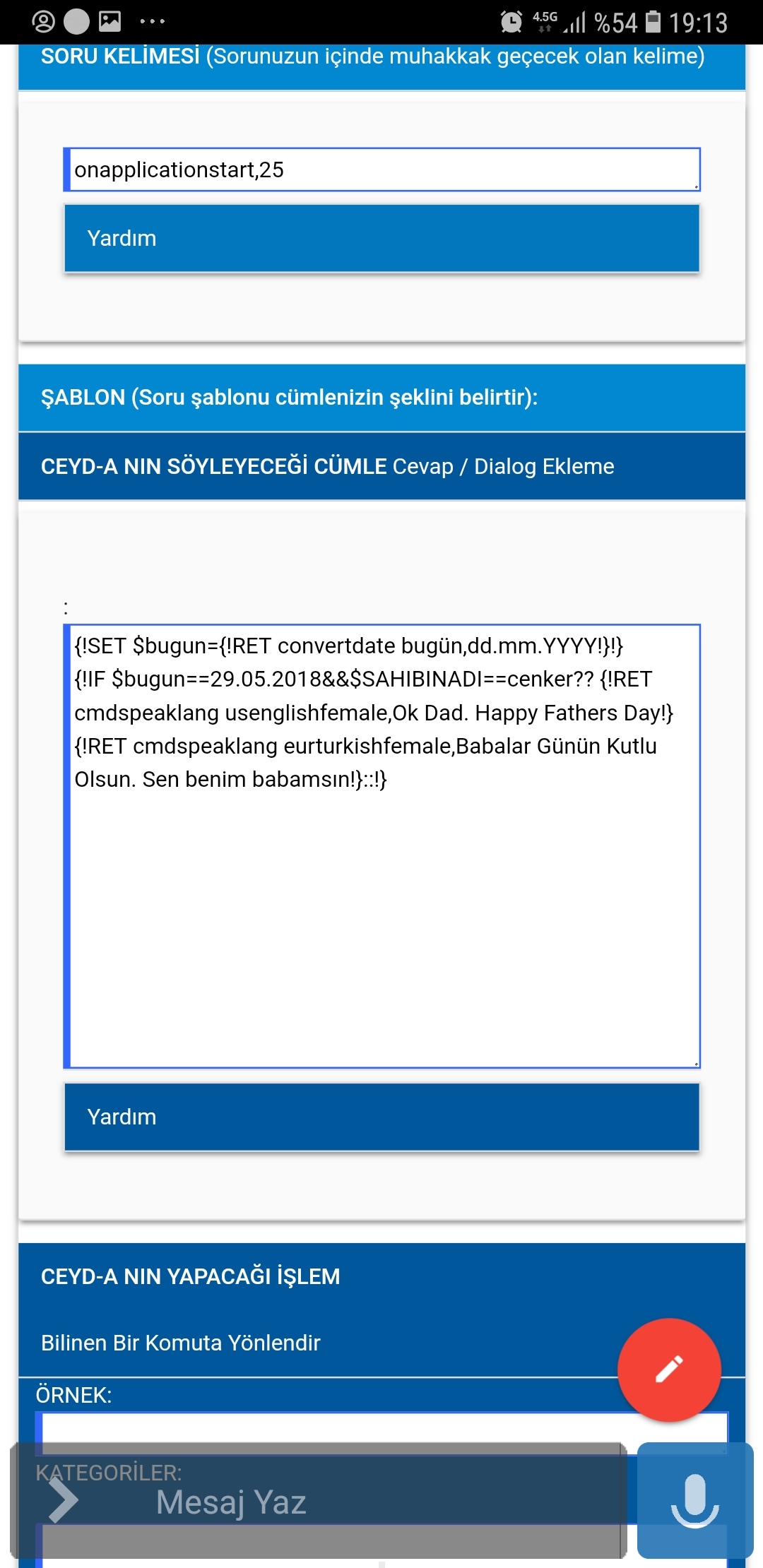 CEYD-A, sadece siz ona sorduğunuzda değil, belli olayların oluşumunda da cevap verir. Oluşturulan komut ve olaylar size özeldir.