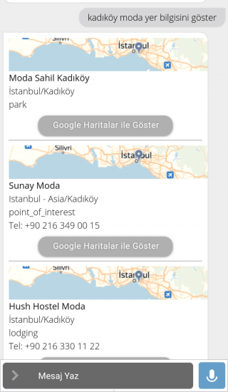 Son aşamada aşağıdaki soruyu sesli/yazılı sorduğumuzda sistem CEYD yorumlayıcısının iç içe komut çağırma özelliği ile aşağıdaki gibi sesli/yazılı cevap verebilmektedir.