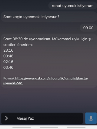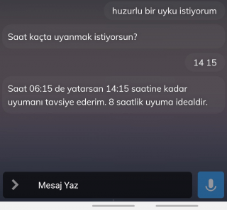 CEYD-A’ ya yeni bir kurgu geliştirelim. Ona rahat uyumak istediğinizi söylediğinizde, uyanacağınız saate göre size en uygun yatma saatlerini söylesin.