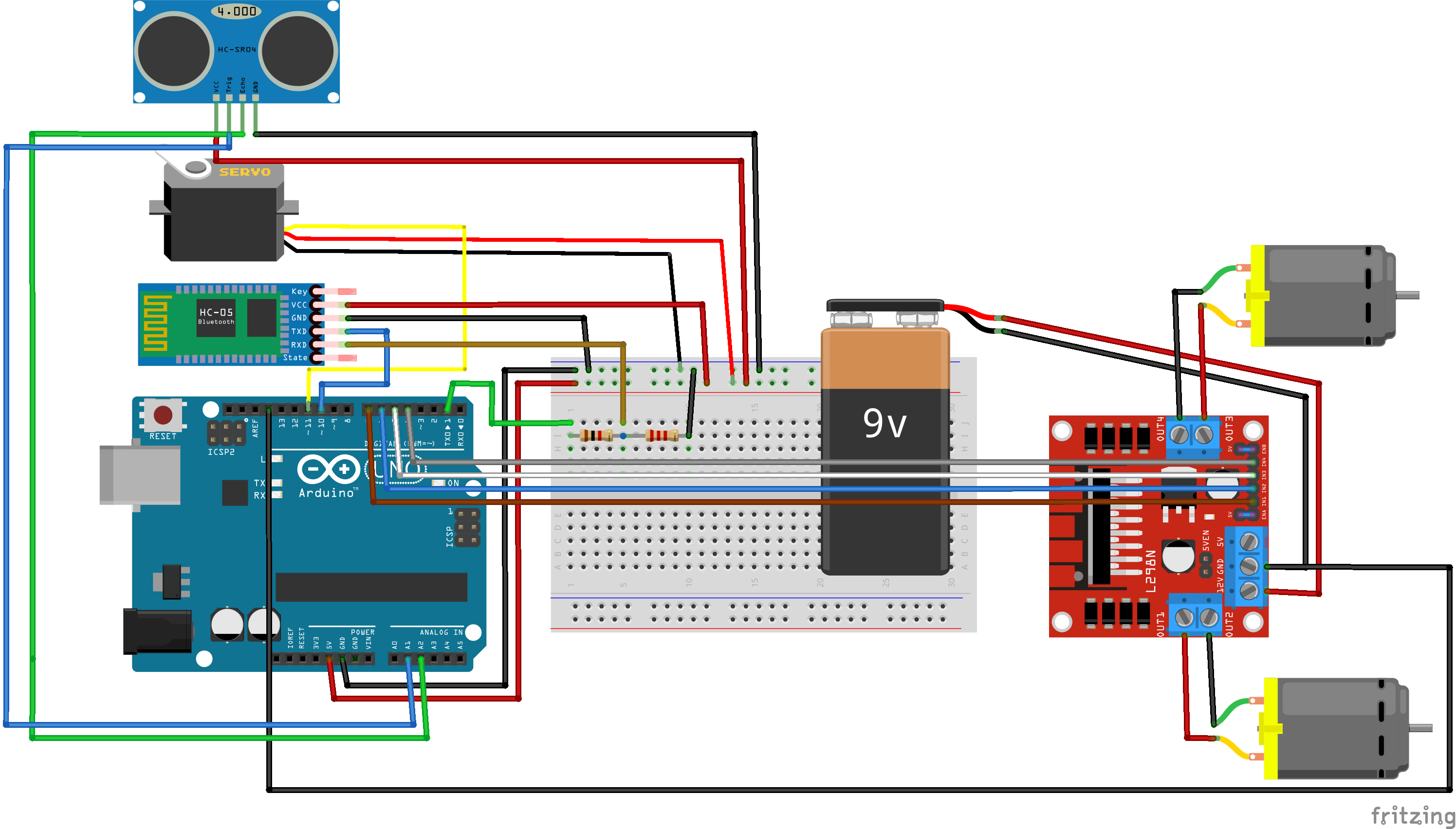 Ek bilgi: Arduino’yu beslemek için videoda Powerbank kullanılmıştır. Motor sürücü için ayrıca 6V (4×1.5V AA Pil) yeterlidir veya devre şemasındaki gibi 9V kare pil kullanılabilir.