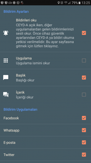 1) Temel Ayarlar -> Diğer Uyarılar -> Sesli Bildirim Uyarılarına girip aşağıdaki ekranda Bildirileri Oku seçeneğini aktif ediniz