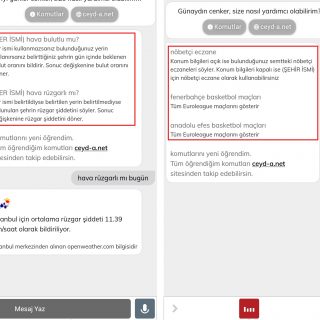 CEYD-A, sadece bir sohbet aracı değil, yer bilgilerini yöneterek size daha iyi hizmetler sunmaya çalışan bir uygulamadır. Aşağıdaki görseller ile neler yapabileceğinize bazı örnekler vermeye çalışalım: CEYD-A, sadece bir sohbet aracı değil, hayatınızı kolaylaştırmaya...
