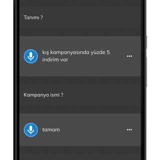 Veri girişi ve takibini klavye yerine sesle yapmaya ne dersiniz ? Örneğimizde bir kampanya modülü oluşturalım. Sesli olarak kampanya başlık ve detaylarını girelim ve yine sesli olarak kampanya başlıklarını sorgulatıp detaylarını öğrenelim. Kampanya gir komutu...