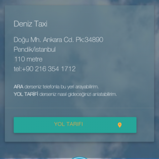 Komut hizmetleri açık ise, En yakın taksi dediğinizde size en yakın taksi gösterildiği gibi, son sürümle birlikte telefon bilgisi de sunulur. CEYD-A nın bir önceki komutu aklında tutma özelliği sayesinde sonrasında ARA dediğinizde ilgili taksinin...