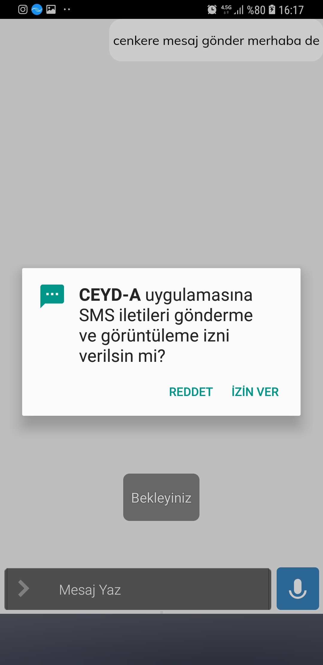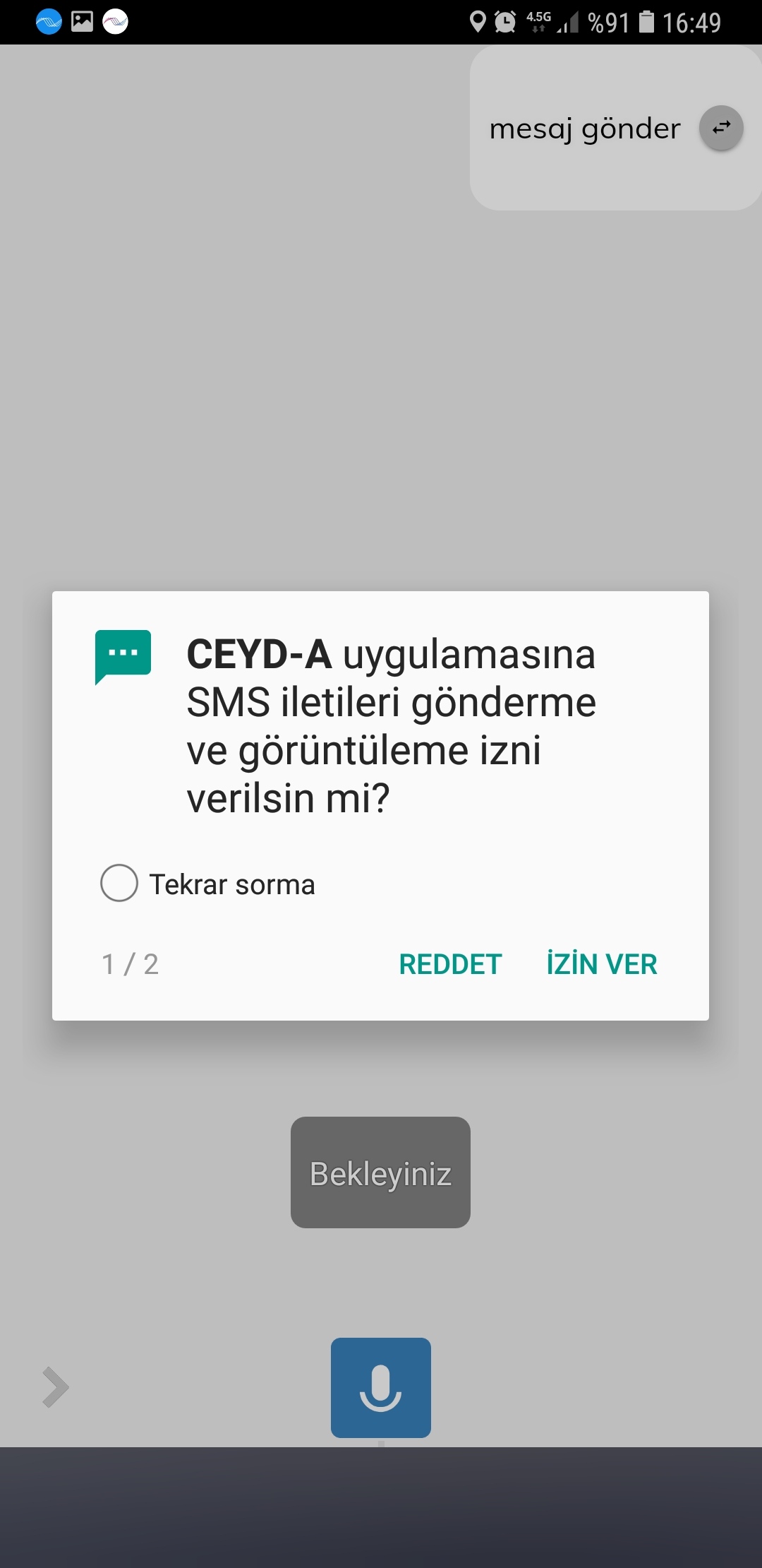 2) Following video shows how to produce a call request and its receive call afterwards. There are two phones on the video both of them contain CEYD-A app. Instructions are included step by step in the video because the application is totally Turkish. If you want to try the same scenario you must speak it in Turkish. Instructions contain English translations of all the speech made to describe the whole process.