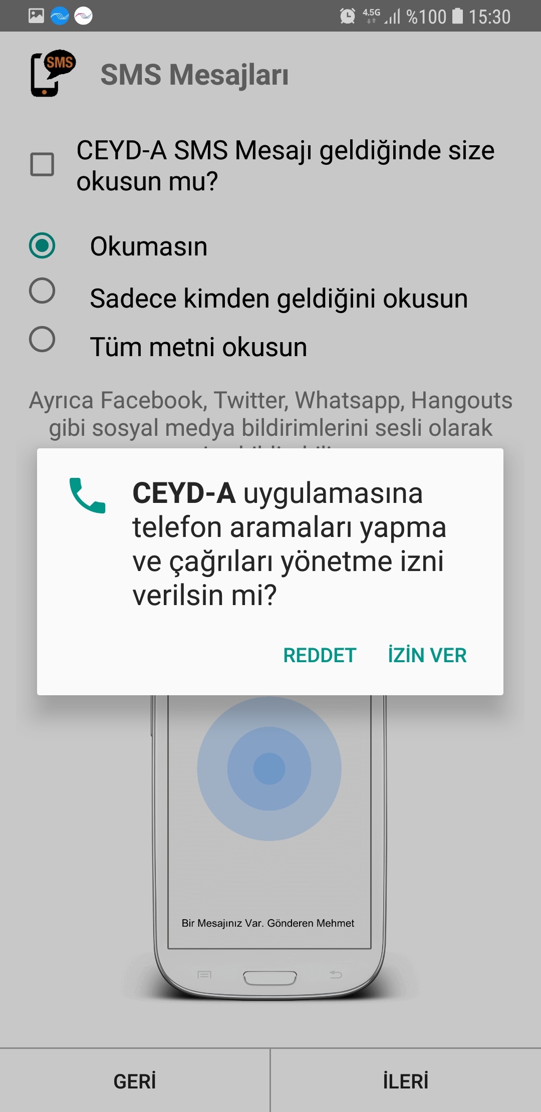 Here are instructions to use the CEYD-A a where declared Call Log and SMS permissions takes places.