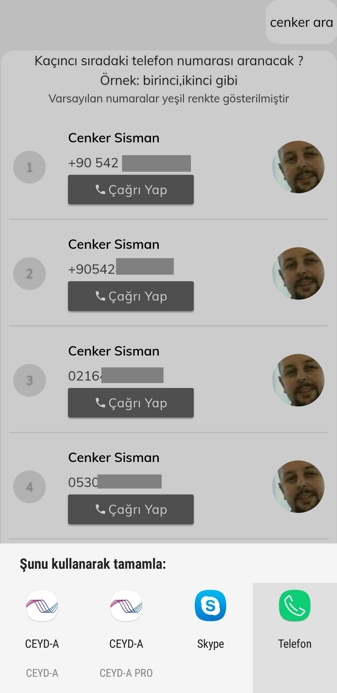 2) Following video shows how to produce a call request and its receive call afterwards. There are two phones on the video both of them contain CEYD-A app. Instructions are included step by step in the video because the application is totally Turkish. If you want to try the same scenario you must speak it in Turkish. Instructions contain English translations of all the speech made to describe the whole process.
